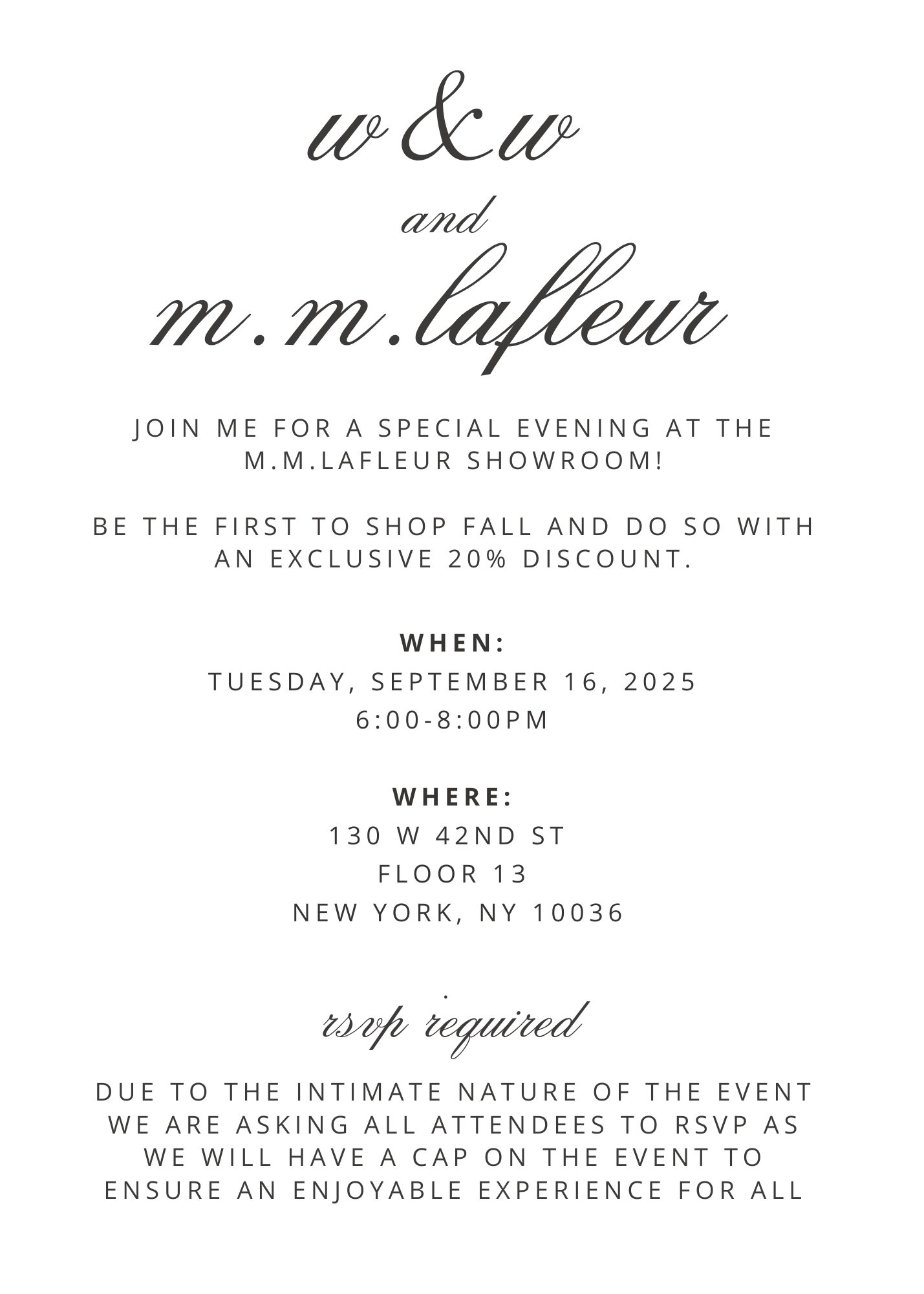 If you're a part of my NYC community, I am thrilled to invite you to a very special event next month toasting the Fall collection at M.M.LaFleur’s Bryant Park showroom!